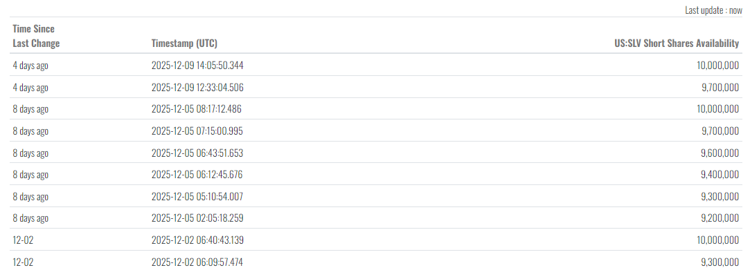 SLV short interest dropped from 56.38 million shares to 51.89 million while the RSI climbed into the stratosphere. Shares available to short? Still sitting at 9-10 million, ready and waiting. Unlike a month back where there were none available.