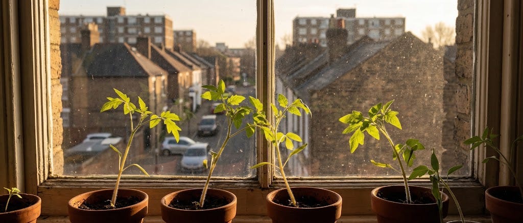 Even a windowsill works. Herbs, microgreens, and sprouts require no outdoor space at all. Sprouts - lentils, chickpeas, fenugreek - are ready in 3-5 days, require nothing but a jar and a rubber band, and are nutritionally dense. This ain’t farming, but it’s a start.