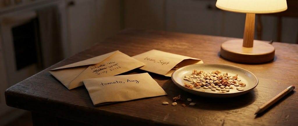 If you’re buying seeds now, buy open-pollinated or heirloom varieties rather than F1 hybrids. F1 seeds don’t reliably reproduce true to type - the parent plant was created by crossing two lines, and the seeds from your harvest revert to unpredictable results.