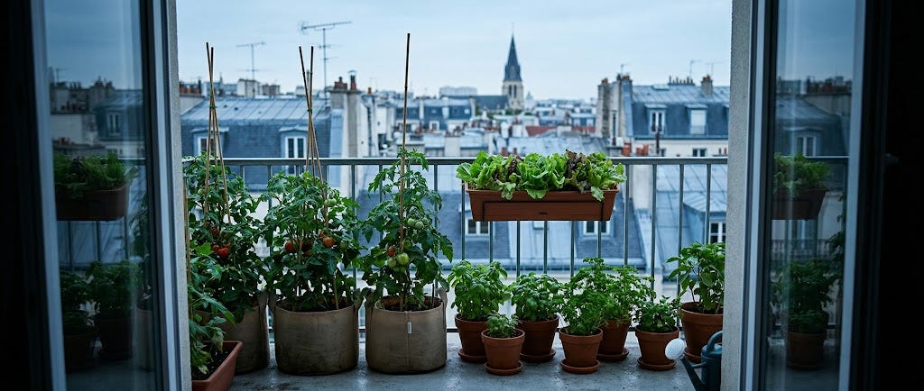 I mean it. A balcony facing south or west, even 4 square metres of it, is genuinely productive space. Cherry tomatoes in 30-litre grow bags. Courgette plants (one is enough - one is actually too much, they produce aggressively). Salad leaves in window boxes. Strawberries in hanging baskets. A collection of herb pots by the door.
