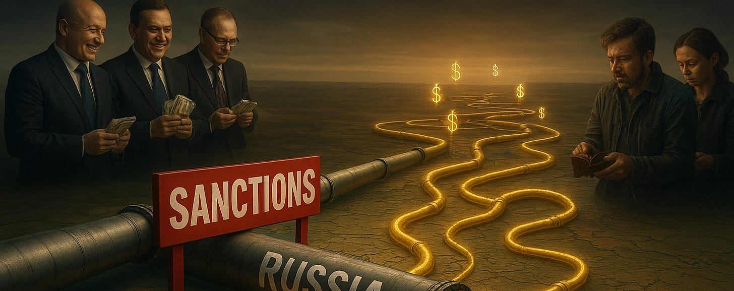 Here's how the magic trick works: Instead of buying Russian gas directly for €1, Europeans now buy the same Russian gas through Indian and Turkish middlemen for €4. The extra €3 goes to Russian profits and middleman fees, while Europeans congratulate themselves on their moral purity. It's genius! Why pay normal prices when you can pay quadruple prices for the same product while funding your enemy's war chest?