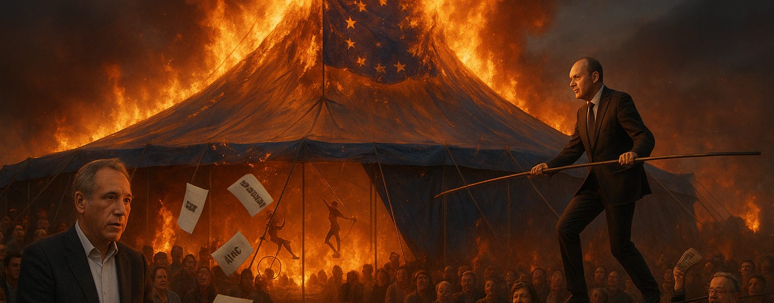 Bravo, Europe. You've turned continental governance into performance art—and the performance is a tragedy disguised as a morality play.