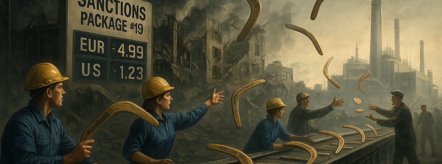 But hold onto your hats, because the right ring features the European Commission's greatest hits: sanctions packages that hurt Europeans while enriching Russians! We're now on the nineteenth—nineteenth!—package of sanctions against Russia, and by some miracle of bureaucratic incompetence, Russia is making more money from European energy sales than before the sanctions began.