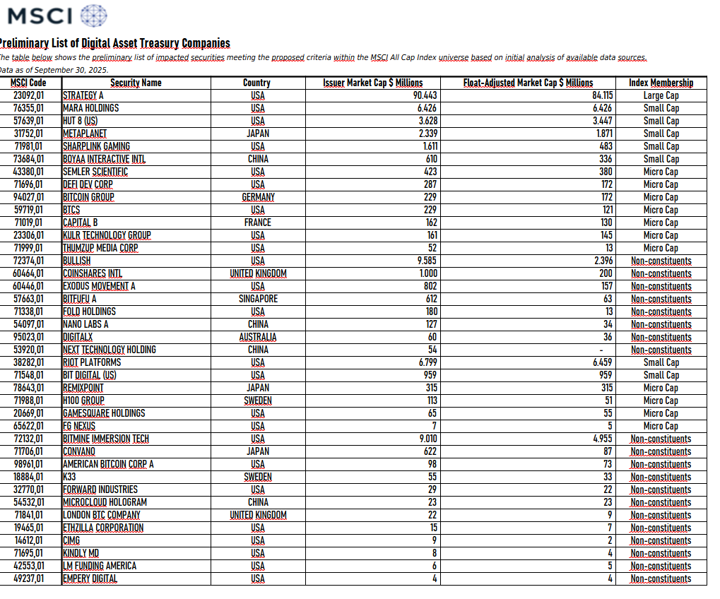 You know MSCI right? Those people who decide what belongs in equity indexes and what doesn’t. Well, they launched a consultation in October about “digital asset treasury companies.” Nobody noticed because consultations are boring. Index methodology documents don’t make headlines.
