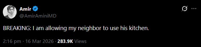 The war isn’t going anywhere. If one thing: I think it’ll be here for longer than any of us suspect. If something truly shifts the picture - Hormuz opens, a ceasefire lands, someone uses something nuclear, Netanyahu is truly dead and Israel capitulates, Yemen finally declares Zero Hour - I’ll write about it. Because it IS important. But “wave 57 hit a base and oil moved $2” is not worth 8 hours of my life anymore.
