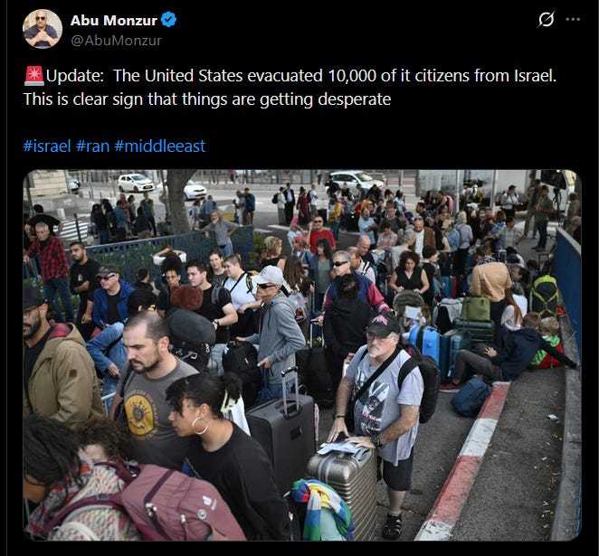 The US is evacuating 10,000 citizens from Israel. Yup, everything’s going swimmingly.