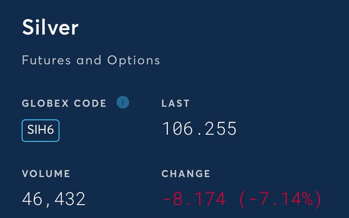 The backtest to $100 is holding. For now. Whether that’s a floor or just a rest stop on the way to $50 depends on what actually broke. If it’s just overleveraged specs getting margin-called, we bounce hard. If it’s something structural - if COMEX or a major bank can’t deliver metal - this is just the beginning.