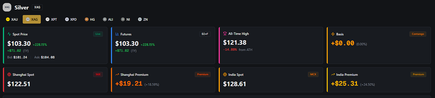 Physical delivery in Shanghai, Japan, and UAE has been trading at massive premiums - reports of $130 per ounce when COMEX showed $72 on January 1st. That’s not a typo. That’s an 80% premium. The biggest paper-physical decoupling in precious metals history.