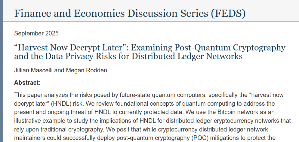 Then there were the institutional warnings. BlackRock added quantum computing warnings to its Bitcoin Trust filing back in May. The Federal Reserve published a report about “harvest now, decrypt later” threats—the idea that adversaries can download the blockchain today and wait for quantum computers to crack it tomorrow. When the world’s largest asset manager and the central bank both flag quantum risk, people with nine-figure Bitcoin holdings pay attention.