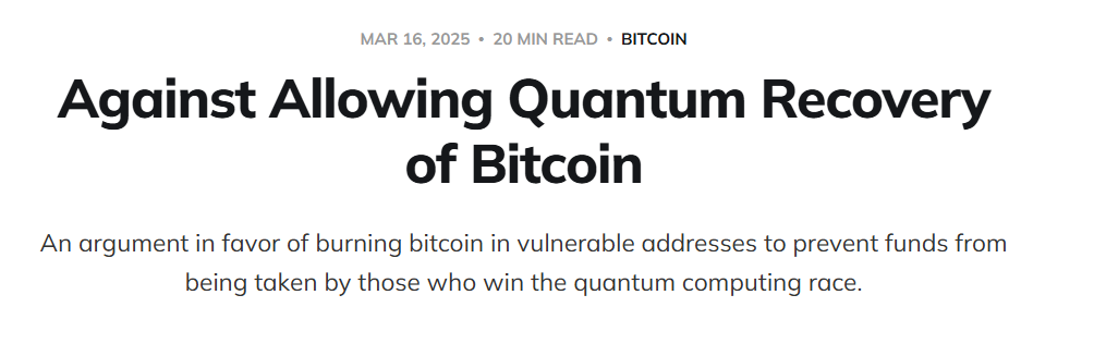Jameson Lopp wrote an essay titled “Against Quantum Recovery of Bitcoin” arguing for freezing vulnerable coins. Paolo Ardoino, CTO of Tether, countered that recovering lost coins might be preferable to permanent loss. These debates aren’t abstract philosophy. They’ll determine whether Bitcoin can implement quantum security without tearing the community apart.