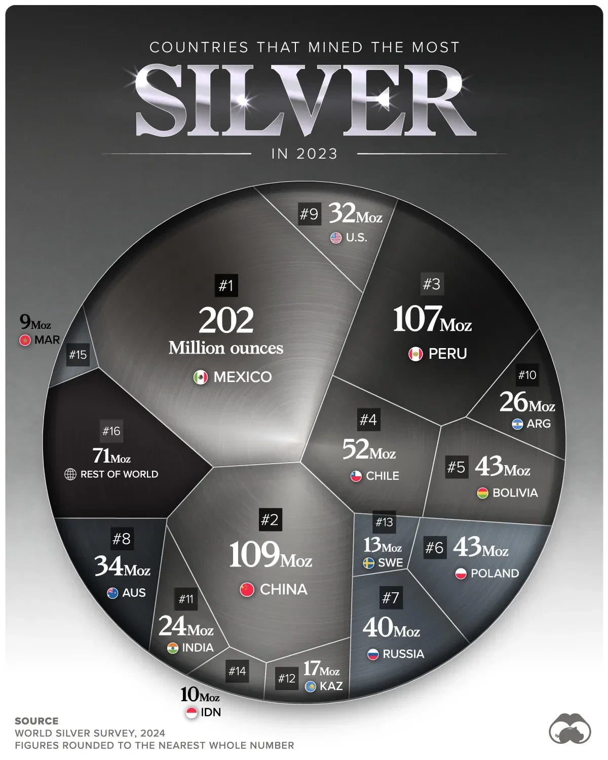 Supply cannot respond. Only 28% of silver comes from primary mines, with 72% emerging as a byproduct from copper, lead, zinc, and gold operations. Global mines are projected to yield 835 million ounces in 2025—a 7% decline from 2016 levels despite soaring demand. Combined deficits from 2021-2024 have reached 678 million ounces, equivalent to erasing ten months of annual production from global stockpiles.