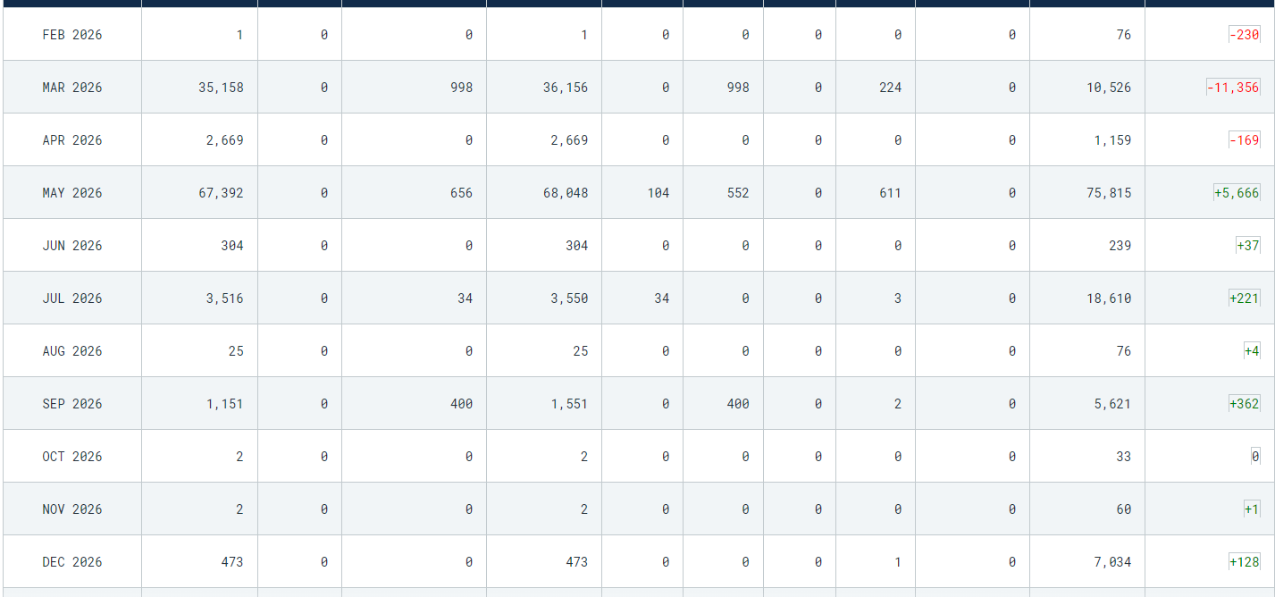 The real punchline is that the backroom deals apparently worked. March OI at the lowest since October 2023. Delivery pressure “resolved”. Crisis averted. For now.