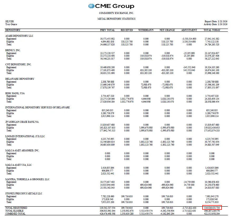 Which brings us to the COMEX (CRiMEX?), where the pressure points converge into something mechanical and potentially violent. The exchange’s own depository statistics show registered silver - metal available for delivery against futures contracts - around 114-120 million ounces. Open interest sits at 150,000 contracts representing 770 million ounces of paper exposure. The exchange has metal to cover maybe 15-16% of its paper claims.