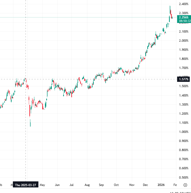 Japan’s bond market had a yield spike last year that triggered brutal selloffs in global markets. The markets recovered. We moved on. But each time this happens, it leaves a scar. Those add up in the end! However, yields didn’t stay down - they kept on climbing, and this week they literally exploded. The 40-year JGB hit 4.24%, the 30-year jumped 42 basis points in two days, the 10-year touched 2.38% for the first time since 1999. The cited reason? PM Takaichi pitched some massive stimulus spending and tax cuts to a country sitting on 256% debt-to-GDP with no explanation of how to fund it. Bond vigilantes who’ve been dead for decades rose from their graves and said no.