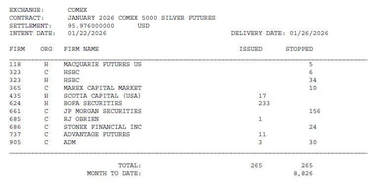 January delivery notices are approaching 9,000 contracts - 45 million ounces - in a month that historically sees about 1,800 contracts. Five times normal. Open interest isn’t dropping as metal gets delivered. It’s rising. Traders are rolling from March into January because they want the metal NOW, not later.