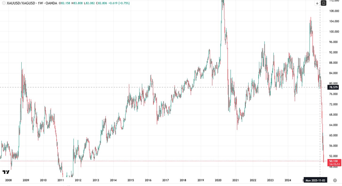 The math supports this if you understand what’s happening. If gold repeats the eight-fold moves it made twice before (1976-1980, 2001-2011) and hits $8,000, then silver at historical gold-silver ratios lands you at $248 (3.1% ratio from 2011) or $520 (6.5% ratio from 1980). Oliver’s range sits right in the middle. But even without hitting those historical ratios, silver compressed in a $4-$50 range for half a century creates a LOT of accumulated energy. Artificial suppression through paper markets, ETF creation without full backing, naked shorting by bullion banks who thought they could control price discovery forever. When these barriers break after that kind of compression, Oliver says you get “panic on the upside” - a repricing event where price just goes vertical because there’s no metal available at the current price.