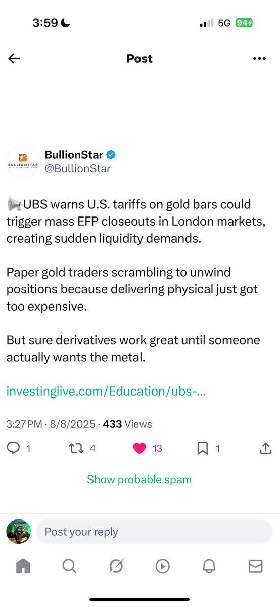 The Swiss gold disruption transcends mere market mechanics. By breaking the triangular flow between London, New York, and Swiss refineries that underpinned the global bullion market for decades, these tariffs shatter the physical infrastructure of monetary alternatives. UBS warns of cascading funding crises as the same gold bars can no longer be endlessly rehypothecated. The Basel III framework, which already pressured banks toward physical holdings, suddenly faces implementation through market force rather than regulation. It's creative destruction of the most destructive sort—annihilating functional systems without viable replacements.
