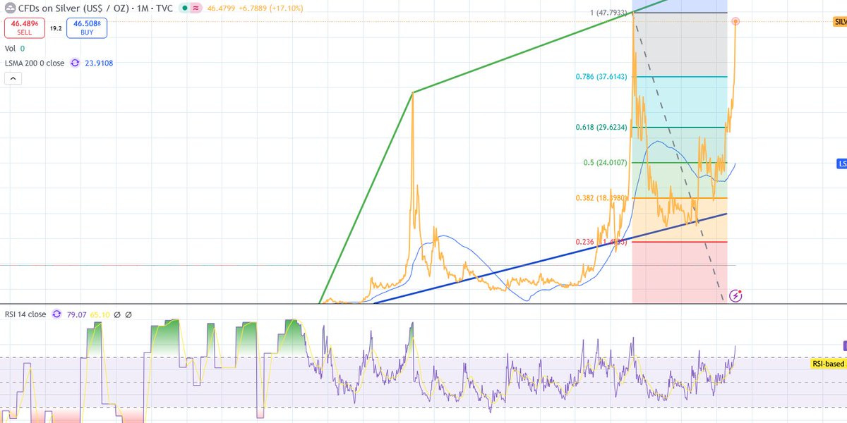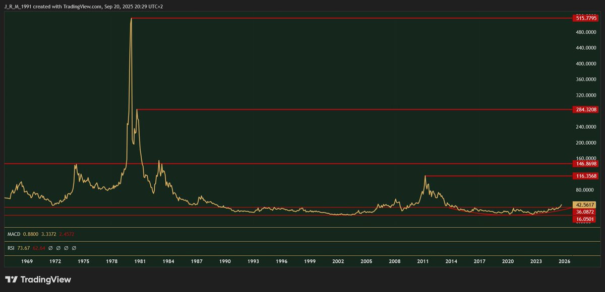 45 years cup & handle in silver. Will we, or won’t we close above this quarter?