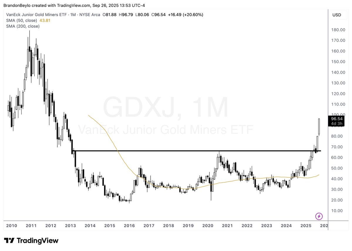 GDXJ: not even close to the top yet. Still 50% to go. And those things seldom go in a straight line. So opportunity enough to get in.
