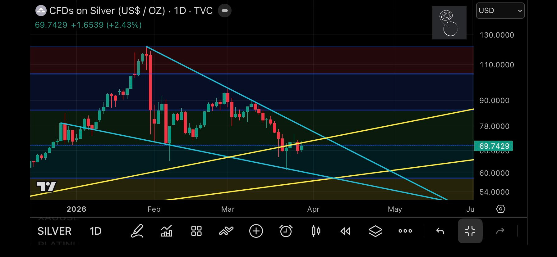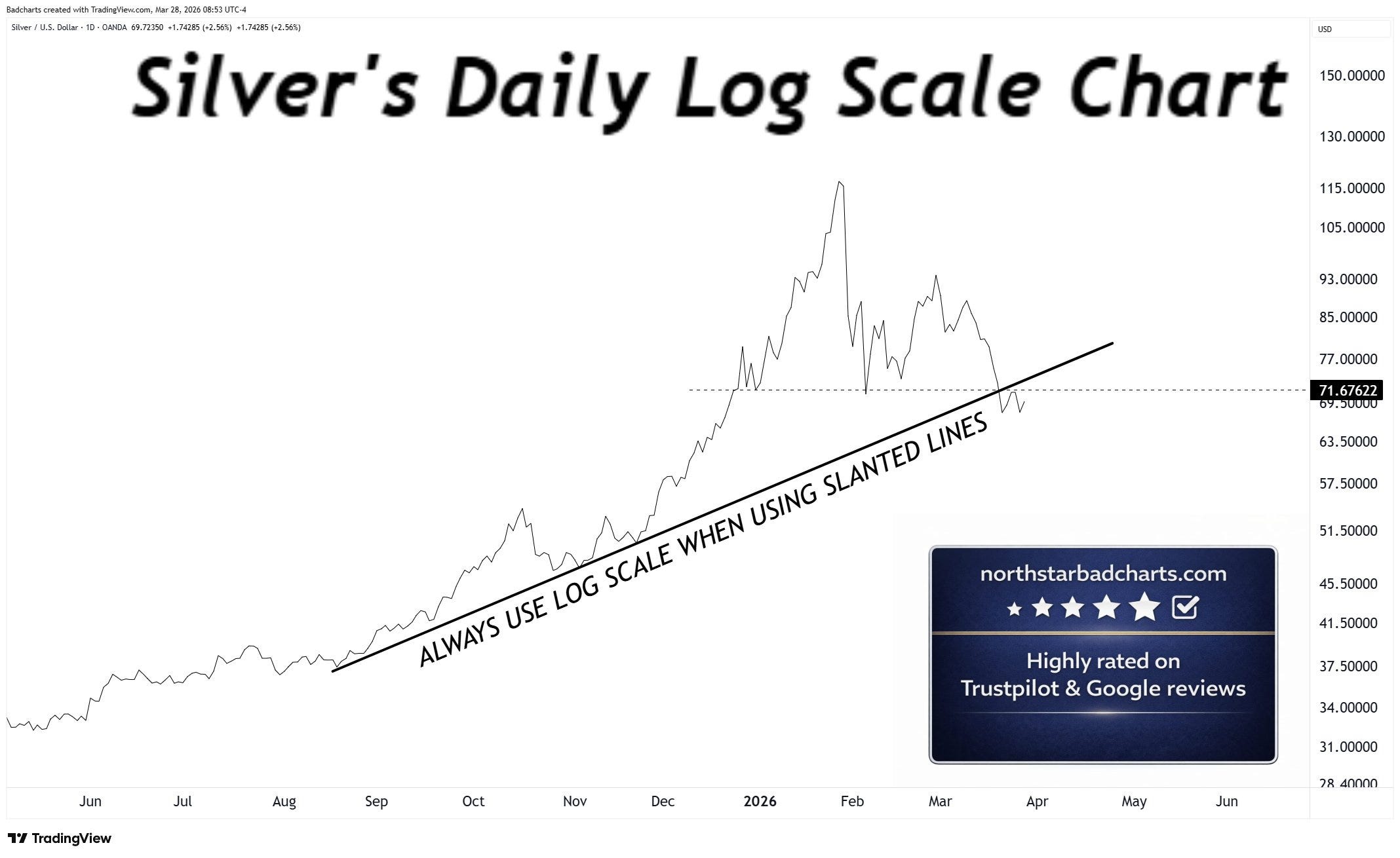 Silver hugging the Aug’25 trendline:
