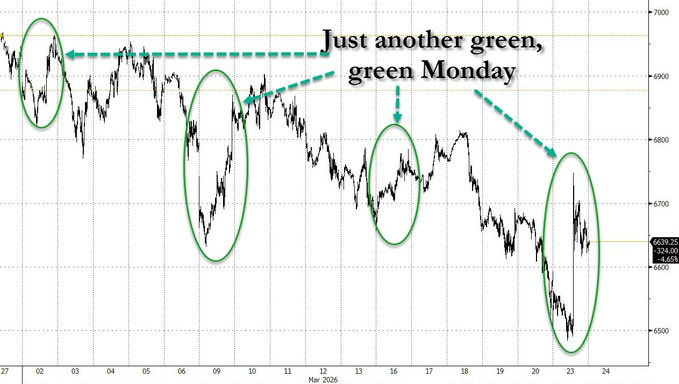 S&P is down 300 points. If you remove Mondays, it’d be down 500: