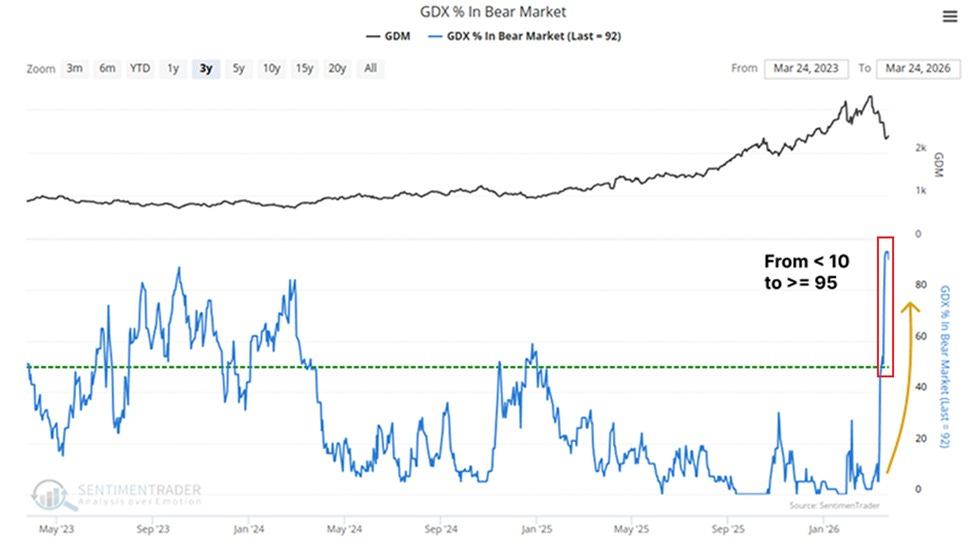 GDX — from overbought to oversold in record time: