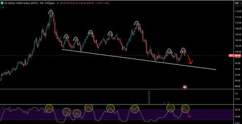 DXY cycle chart - potential long-term dollar reversal point?