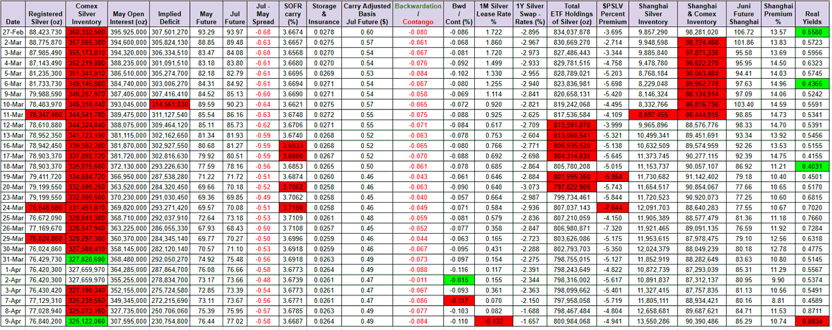 Negative silver lease rate table: