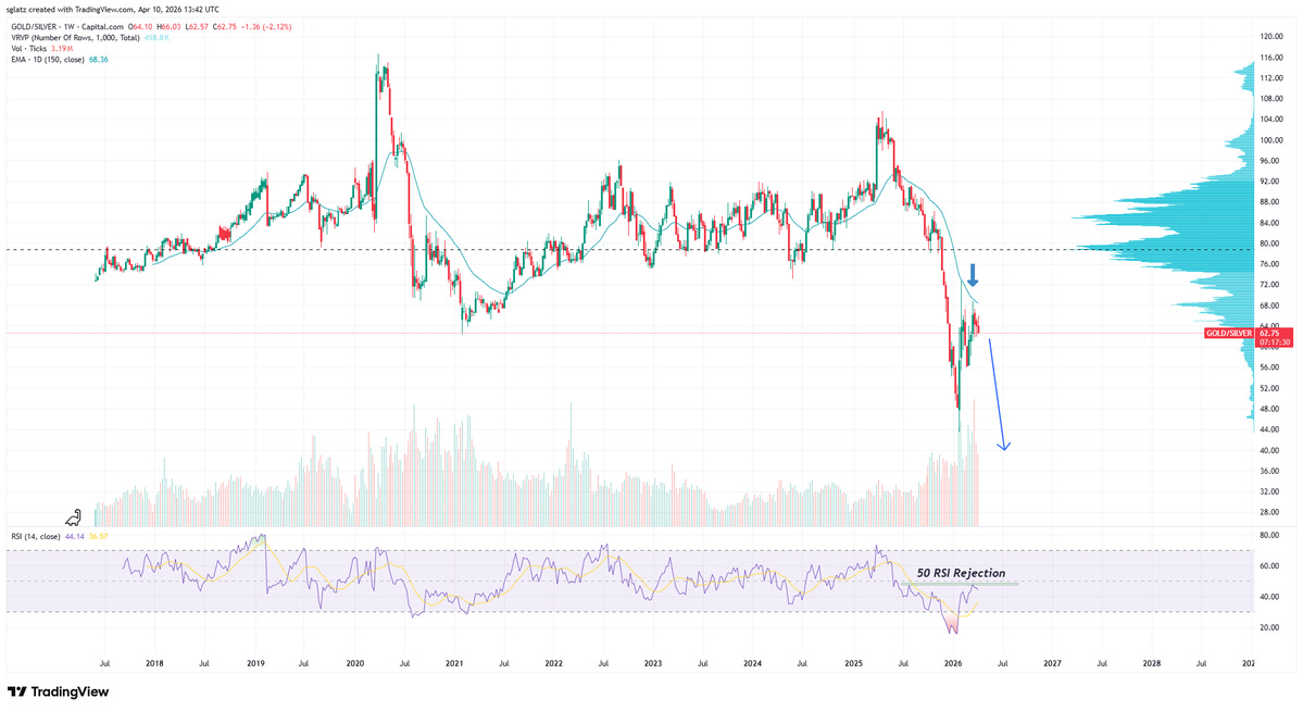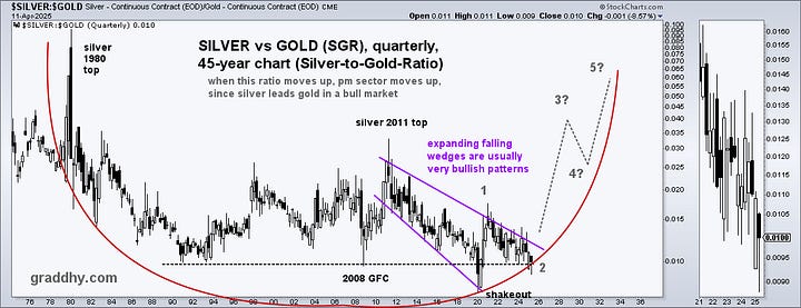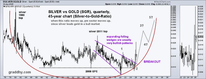 Silver-gold ratio breaking out of a 15-year expanding falling wedge: